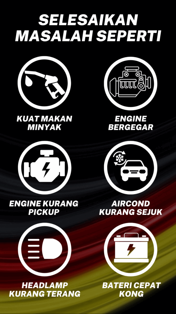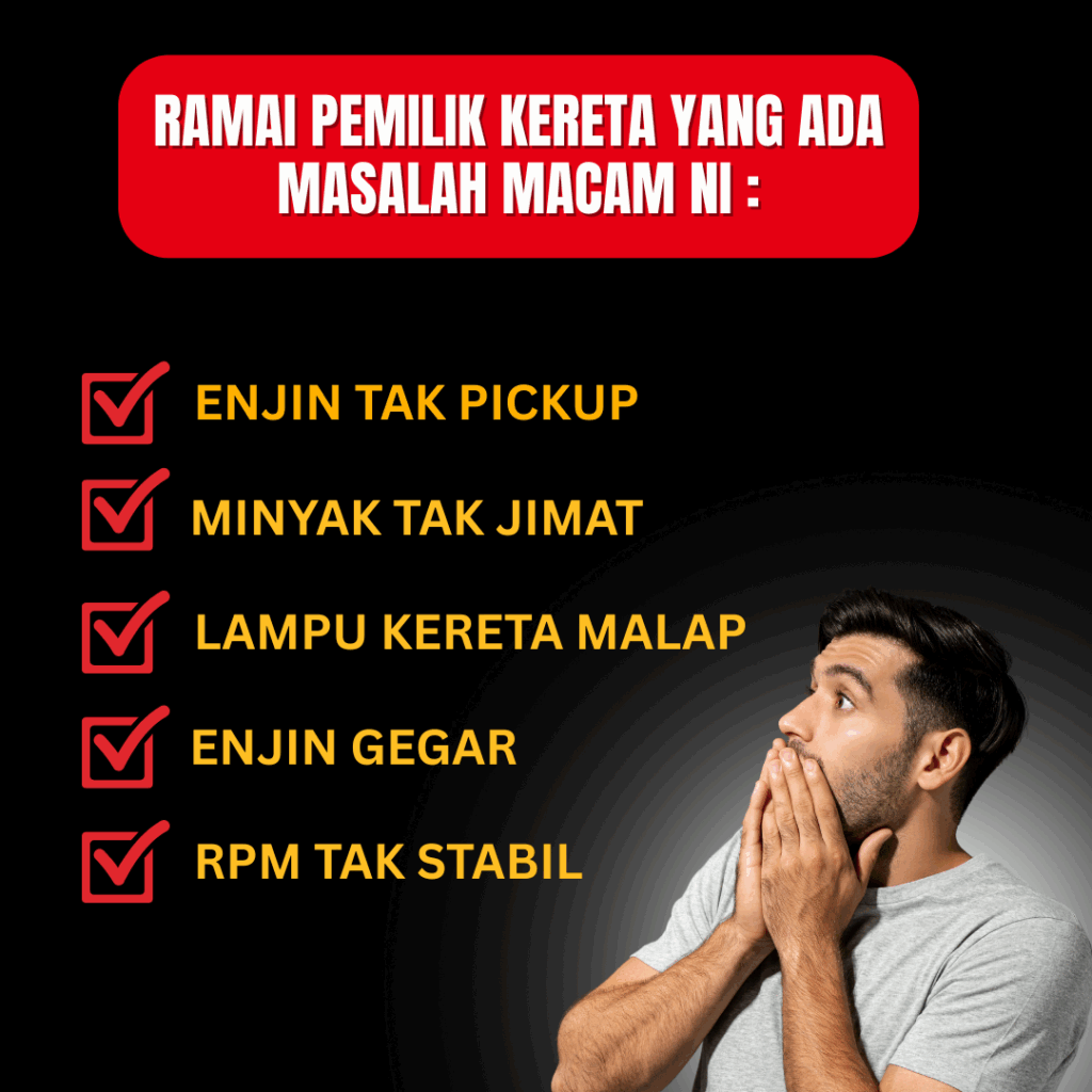 KHAS UNTUK KERETA MASALAH ENJIN KUAT MAKAN MINYAK, ENJIN KURANG PICKUP, ENJIN BERGEGAR, HEADLAMP TAK TERANG DAN AIRCOND KURANG SEJUK