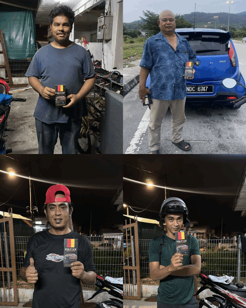 Pastikan kenderaan anda ada soket api rokok. Cucuk pada soket tersebut dan pastikan lampu pada Voltecx menyala untuk pastikan ianya berfungsi. Tunggu 30-60 saat dan anda boleh mulakan perjalanan.