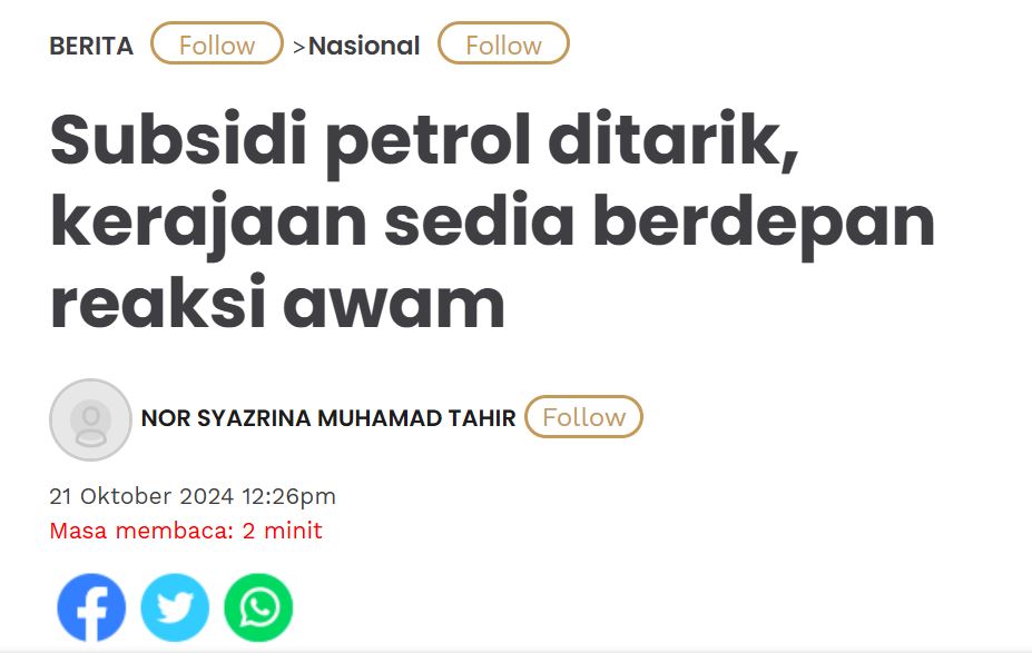 BUKAN MASALAH KERETA JE...HARGA MINYAK PUN MAKIN NAIK !!